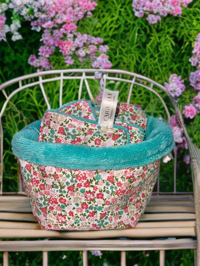 Nos lingettes démaquillantes et leur corbeille Réversible assortie